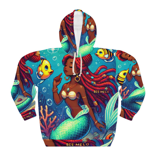 Cool Mermaid Vibes Unisex Pullover Hoodie - Colorful Underwater Pixel Art Hoodie