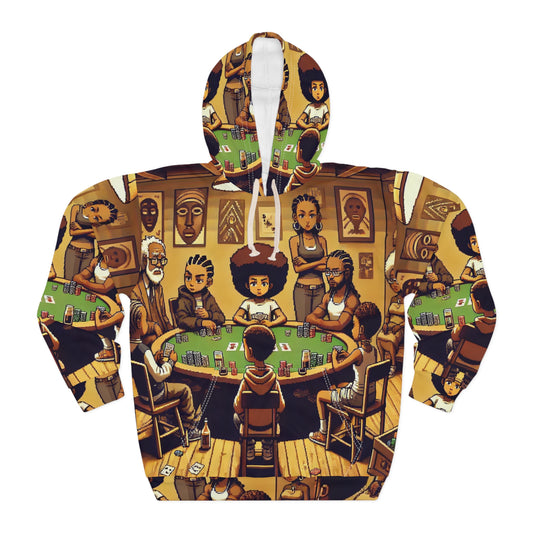 Family Poker Night Unisex Pullover Hoodie - Pixel Art Boondocks Themed AOP Hoodie