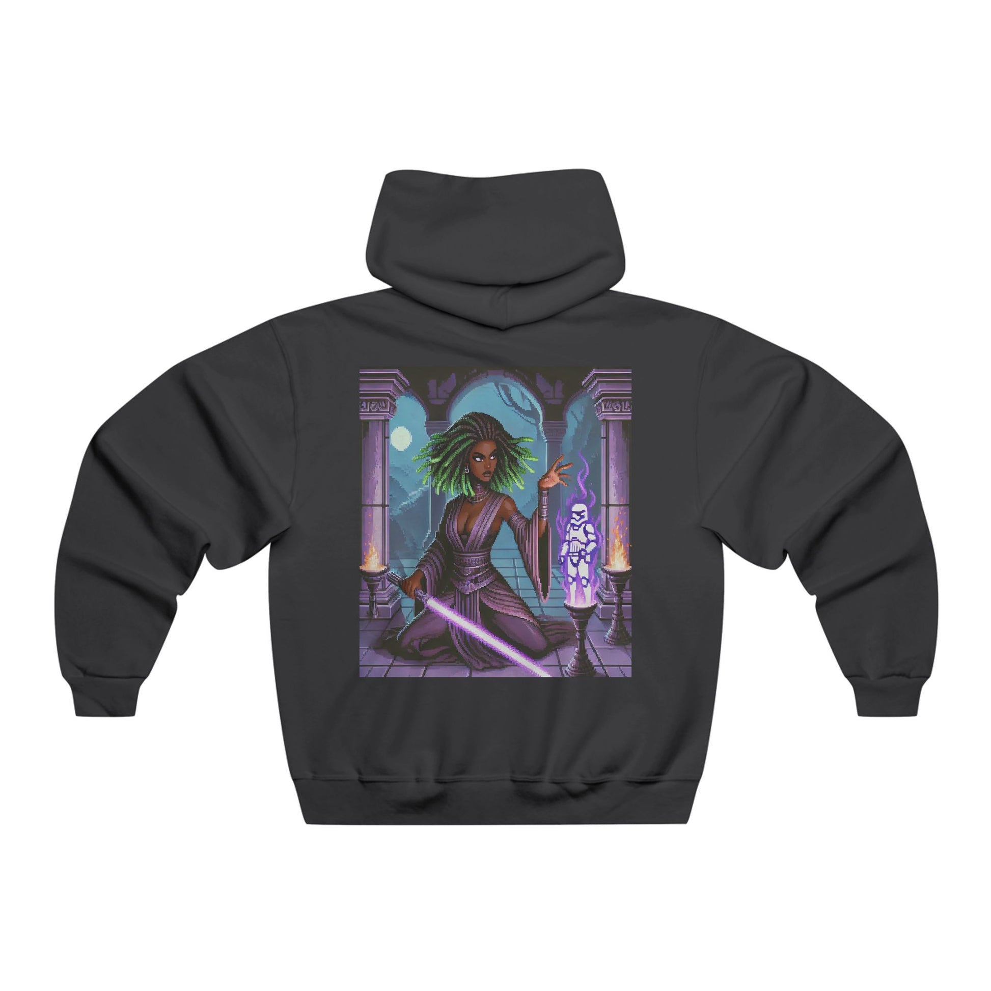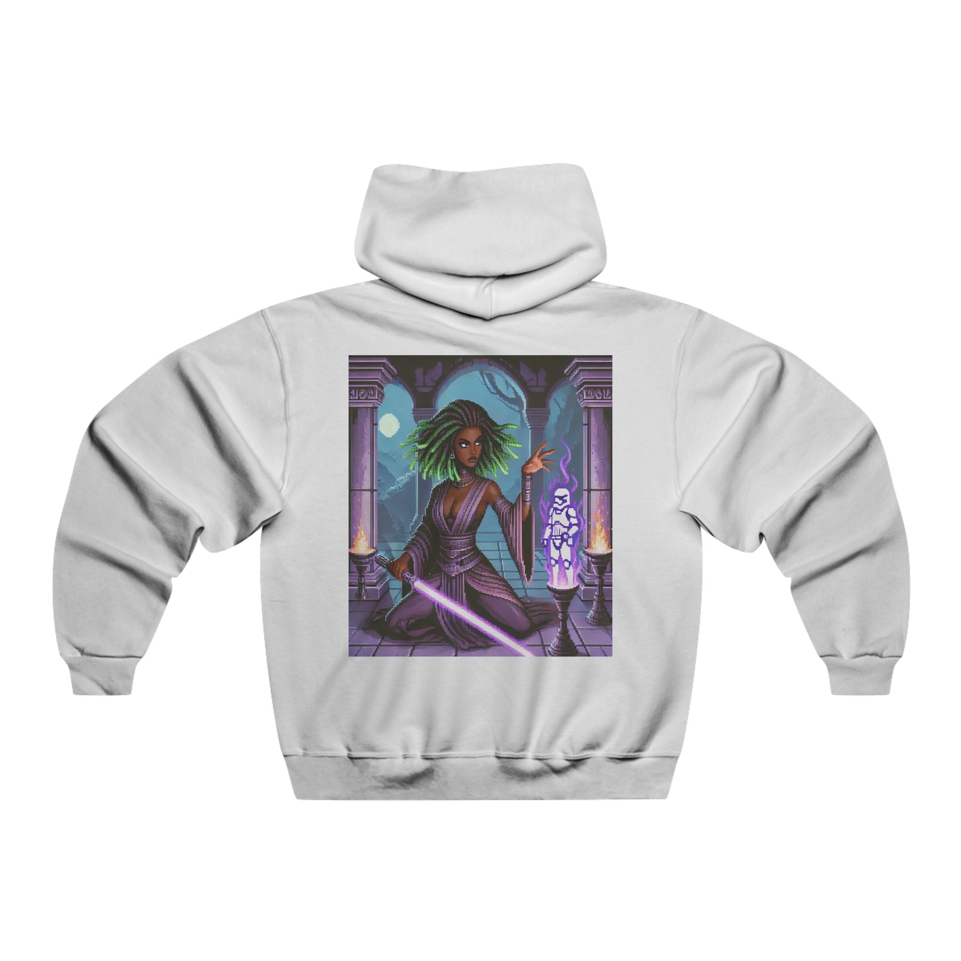 Enjoy the soft feeling of our Mystic Force Wielder hooded sweatshirt 996MR. This Pixel Art inspired Hooded Sweatshirt is pre-shrunk to maintain style without resulting in any unwanted surprises after washing. It’s made with a 50/50 blend of cotton and polyester. It sports a sizable front pouch pocket. Lastly, its high-stitch density makes for a smooth and vibrant printing surface.